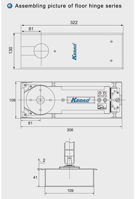 دفّاش أرضي عالي الجودة موديل KEDAO 322، مصمم للتحكم في إغلاق الأبواب بسلاسة وثبات، ويُعد خياراً مثالياً للأبواب الفولاذية والخشبية وأبواب الزجاج المقوّى.